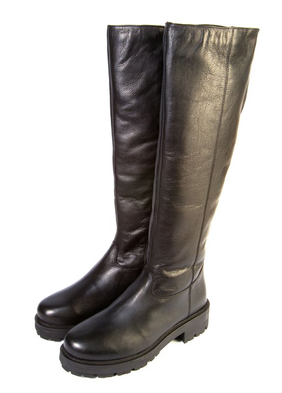 Женские сапоги из натуральной кожи, подкладки из ворсин и на подошве из термо резины (цвет: черный).