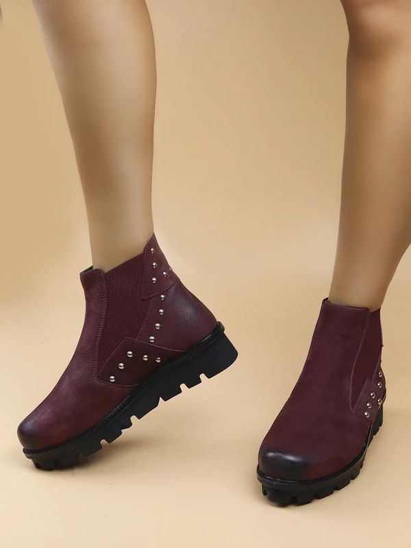 Женские полусапоги из натуральной кожи на подошве, подкладке из ворсин, и из термо резины (цвет: бордовый).